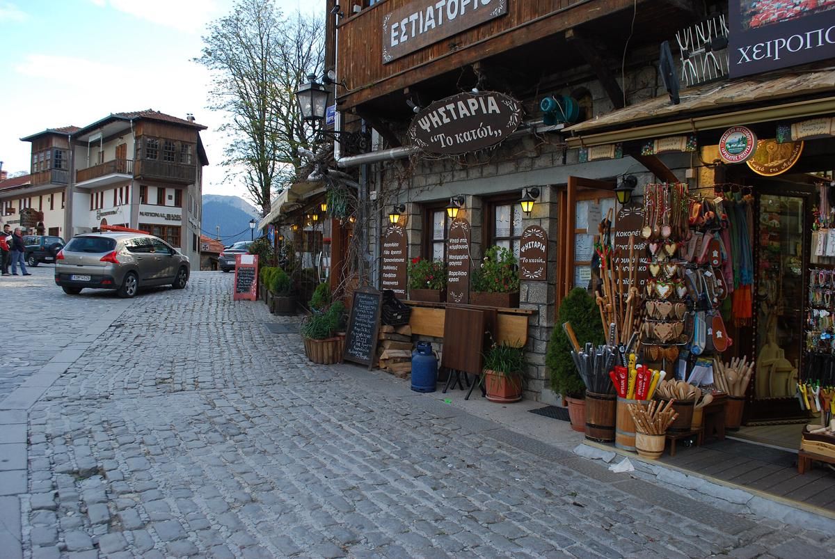 Beberapa bangunan bersejarah seperti Tositsa Mansion dan gereja Agia Paraskevi abad ke-15 menampilkan detail ukiran kayu dan mosaik langka yang menjadi daya tarik tersendiri. Arsitektur ini tidak hanya estetis tetapi juga fungsional, mampu menghadapi iklim pegunungan yang dingin dan keras.