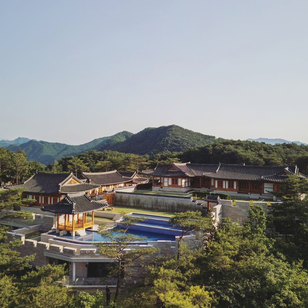 Makan malam disajikan di ruang terbuka yang menghadap lanskap, dengan menu tradisional Korea yang disusun selaras dengan musim. Semua pengalaman ini membuat tamu merasa bukan sedang “tinggal” di hotel, melainkan “menjadi bagian” dari tempatnya.
