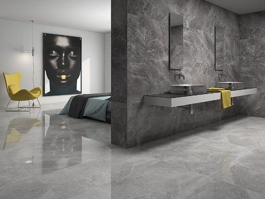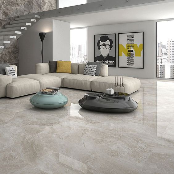 Berwarna putih keabu-abuan dengan urat halus, populer dalam gaya minimalis dan klasik. - Marmer Statuario