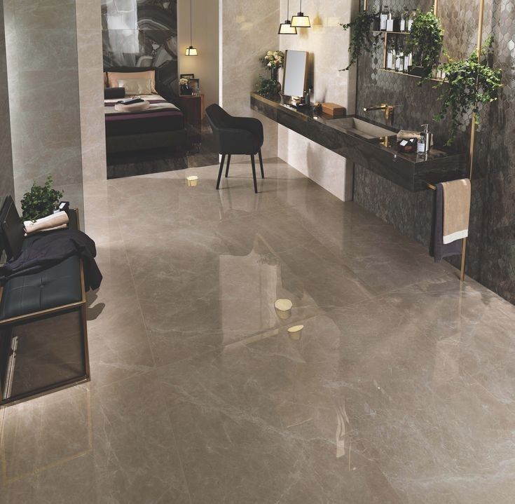 Permukaan marmer yang halus dan pantulan cahaya lembutnya mampu menghadirkan suasana tenang dan menenangkan di dalam rumah. Selain mempercantik ruangan, marmer juga memberikan nuansa elegan yang menonjolkan karakter ruangan menjadi lebih berkelas dan eksklusif.
