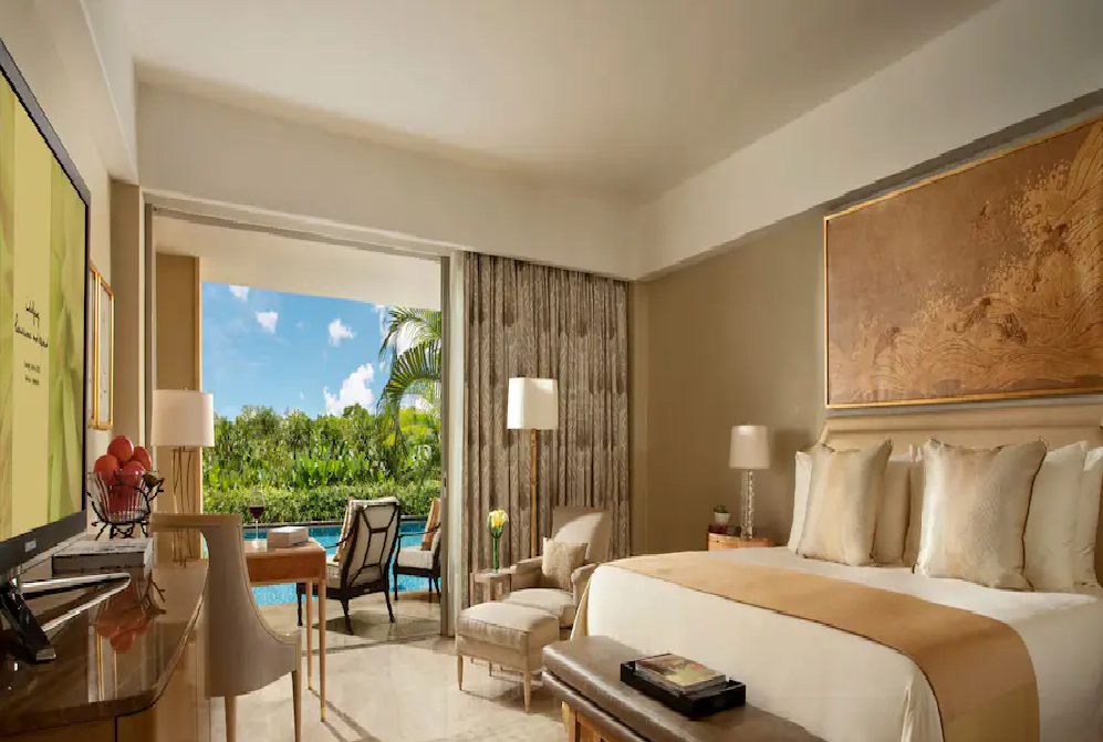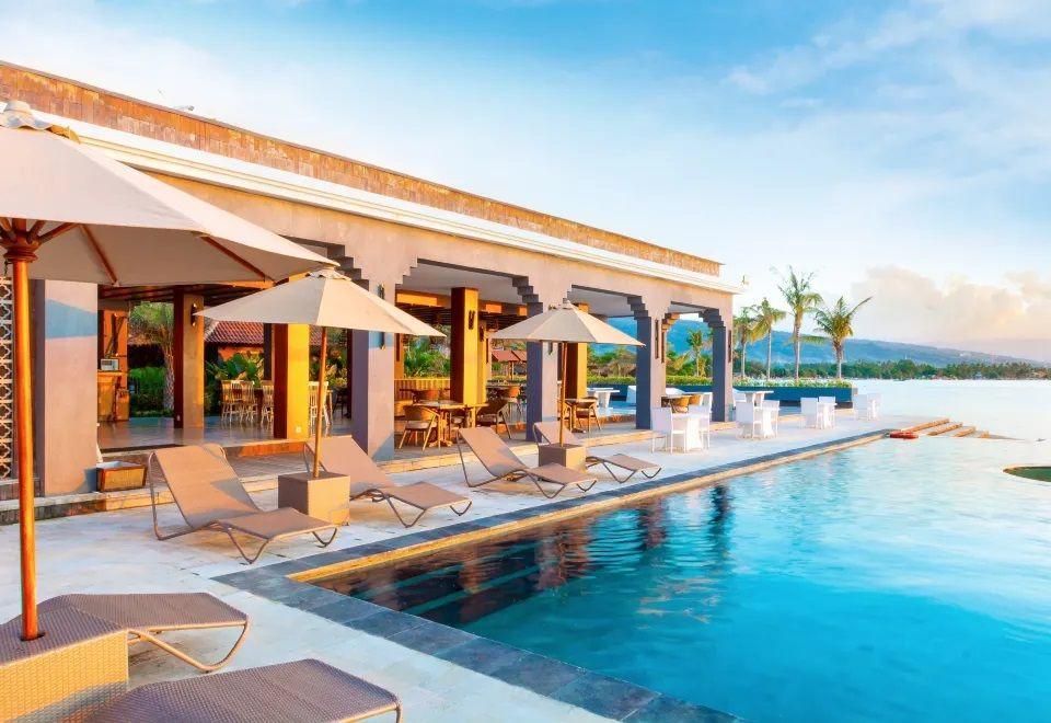 Mulia Resort dikenal sebagai salah satu resort termewah di Bali yang bahkan dijuluki “Hotel Bintang 6” oleh para tamu. Berlokasi di kawasan Nusa Dua dengan view Pantai Geger, resort ini hadirkan desain elegan dan akses eksklusif langsung ke pantai. Fasilitasnya sangat lengkap, mulai dari infinity pool, mulia spa, kids club, hingga cabana pribadi di tepi pantai. Untuk momen spesial bersama pasangan, tersedia pilihan fine dining dengan suasana romantis.